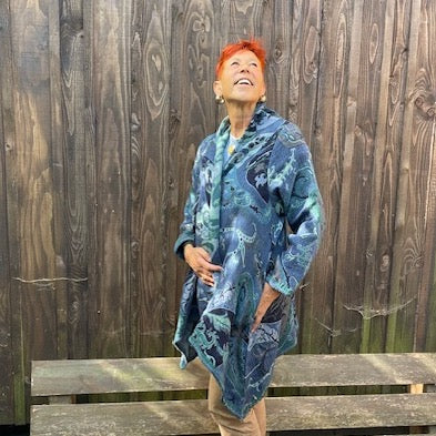 A beautiful woollen coat in soft blues and light blues … the boiled wool makes it fluffy and comfortable like a dream.