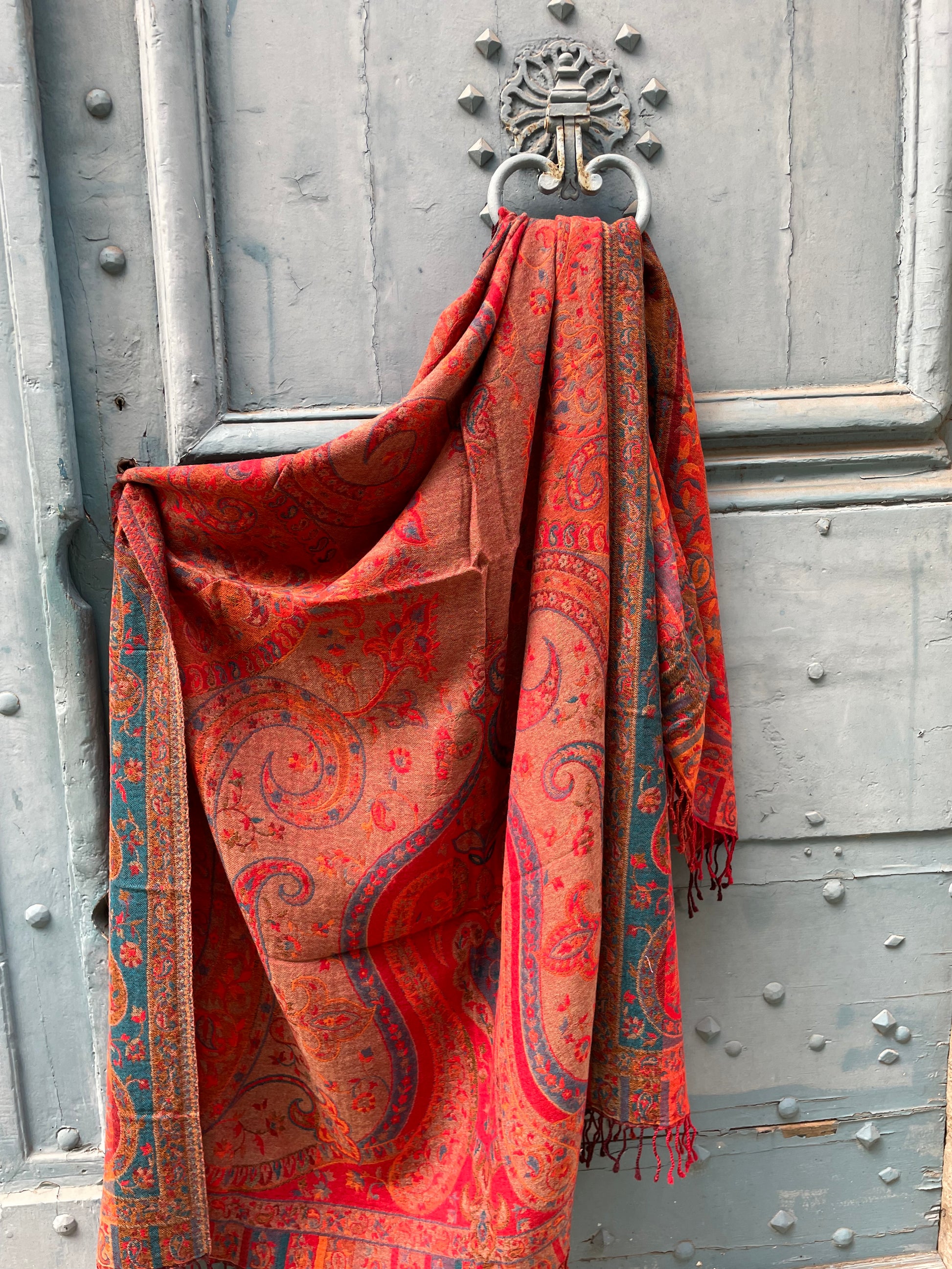Beautiful throw in nice soft red and orange colours with paisley designs.
