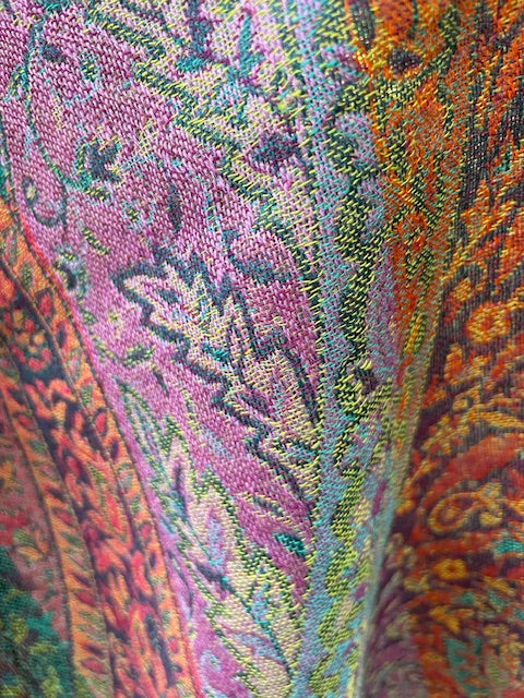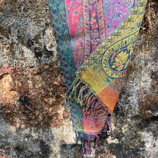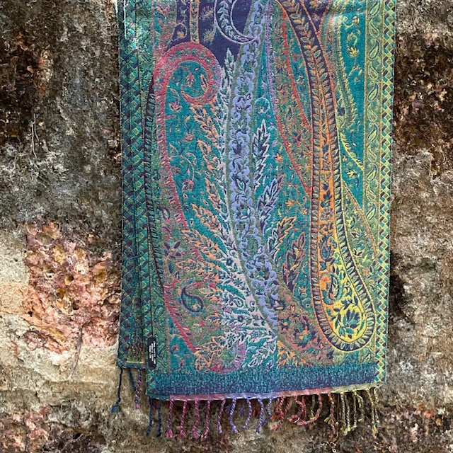 This beautiful scarf in dark green and light purple colours will bring some warn in cold time.